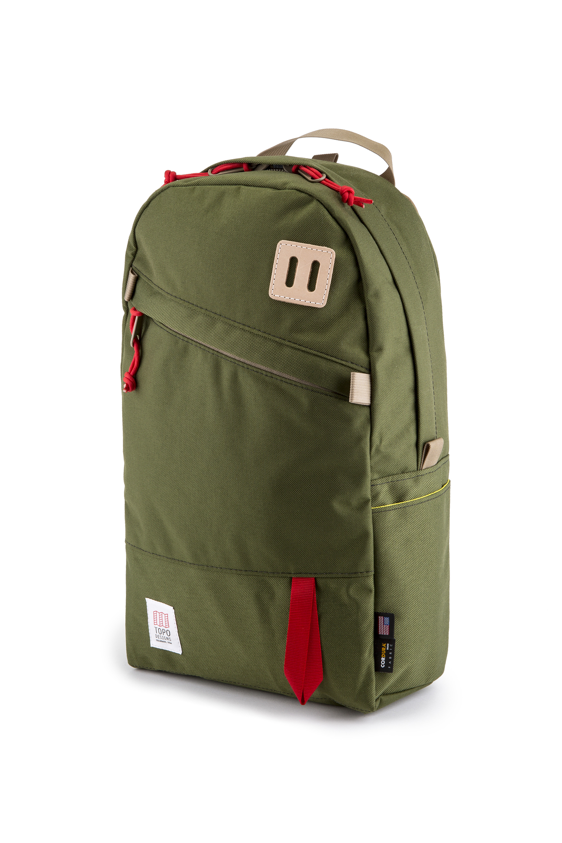 Le sac à dos Daypack de Topo Designs porte très bien son nom : idéal pour une journée de travail ou de balade durant laquelle vous pourrez y ranger tous vos essentiels. Il possède deux poches latérales dans lesquelles vous pourrez ranger une gourde (ou un sandwich !) mais aussi un compartiment pour ordinateur de 15 pouces ainsi que de nombreux rangements intérieurs. À l’avant se trouvent une poche équipée d’un zip pour lunettes, porte-feuilles ou téléphone portable et un patch de fixation pour mousqueton. Son dos et ses bretelles matelassés assurent un confort de portage même après plusieurs heures d’utilisation. Fabriqué en Cordura® 1000D, il est très résistant à l’abrasion et, comme tous les sacs à dos et accessoires de la marque Topo Designs, il est garanti à vie. Fabriqué aux USA.