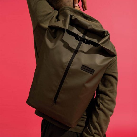 Le sac à dos Frederik est un sac minimaliste, léger et très pratique. Il s’ouvre de deux manières différentes grâce à un zip frontal intégral et une fermeture en roll-top. Son tissu est enduit d’un silicone écologique, ce qui vous permet de garder vos affaires au sec. À l’intérieur, vous pourrez ranger facilement vos affaires de travail ainsi qu’un ordinateur de 15,4 pouces. Dans le dos se trouve une poche à accès rapide dans laquelle vous pourrez ranger vos porte-feuilles, téléphone ou lunettes.
